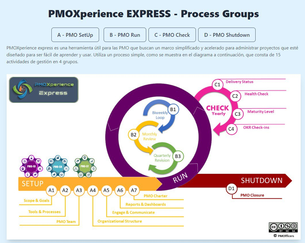 Your organization already has a PMO and wants to optimize it. We train your team in the latest methodologies and frameworks for your PMO: predictive, adaptive, hybrid, etc... We analyze the situation together with you using our own PMO X-SUITE tools: HealthCheck, Maturity...
